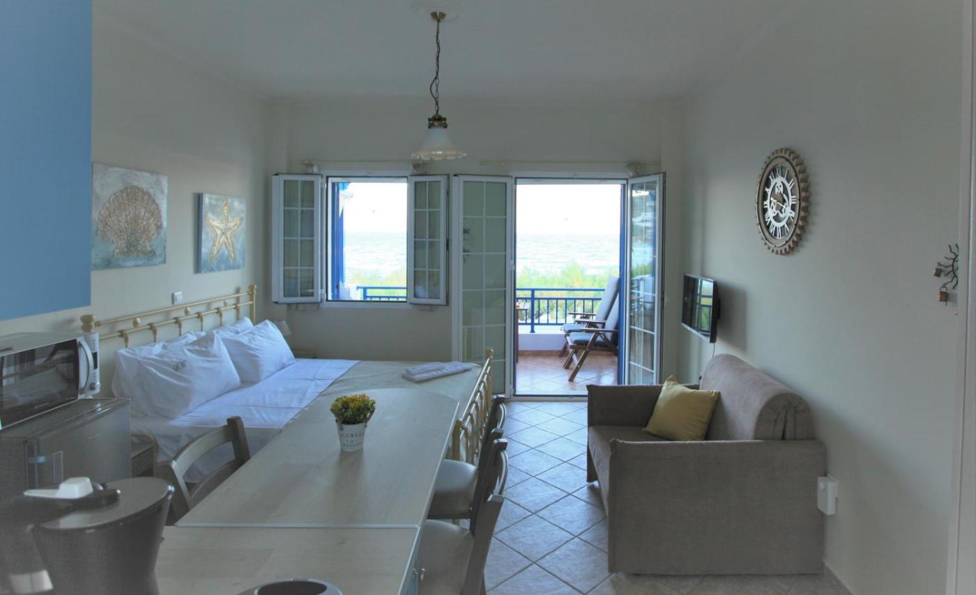 One-Bedroom Apartment. Featuring a private entrance, this air-conditioned apartment consists of a kitchen, 1 bedroom and 1 bathroom with a walk-in shower and a hairdryer. The fully equipped kitchen features a stovetop, a refrigerator, kitchenware and an oven. Boasting a terrace with sea views, this apartment also provides a washing machine and a flat-screen TV with streaming services. The unit offers 2 beds.