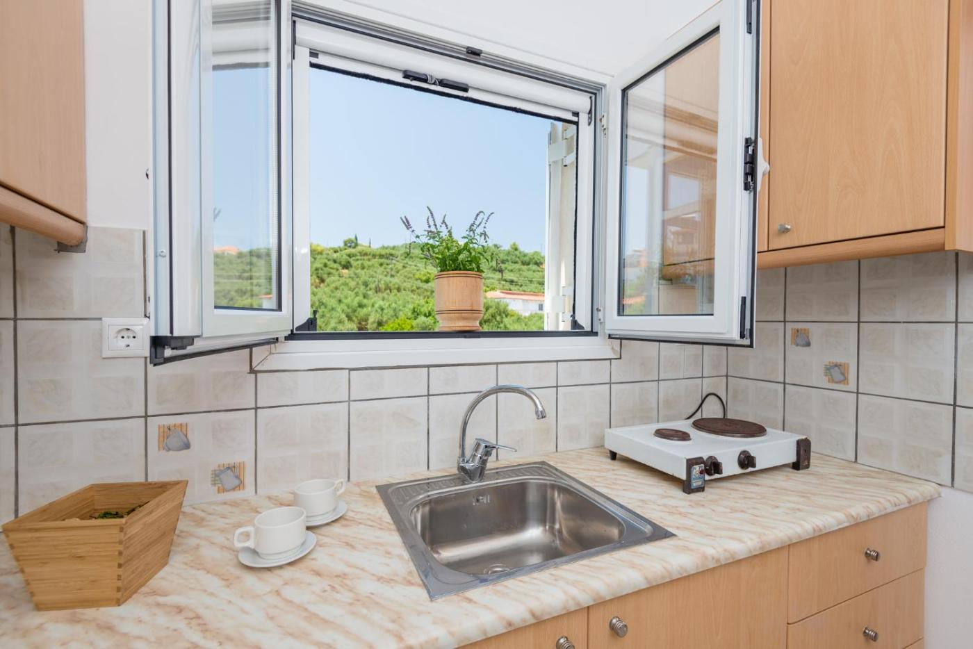 Two-Bedroom Apartment. Opening to a balcony with Ionian Sea views, this air-conditioned apartment includes a TV, free WiFi and a kitchenette with a fridge.