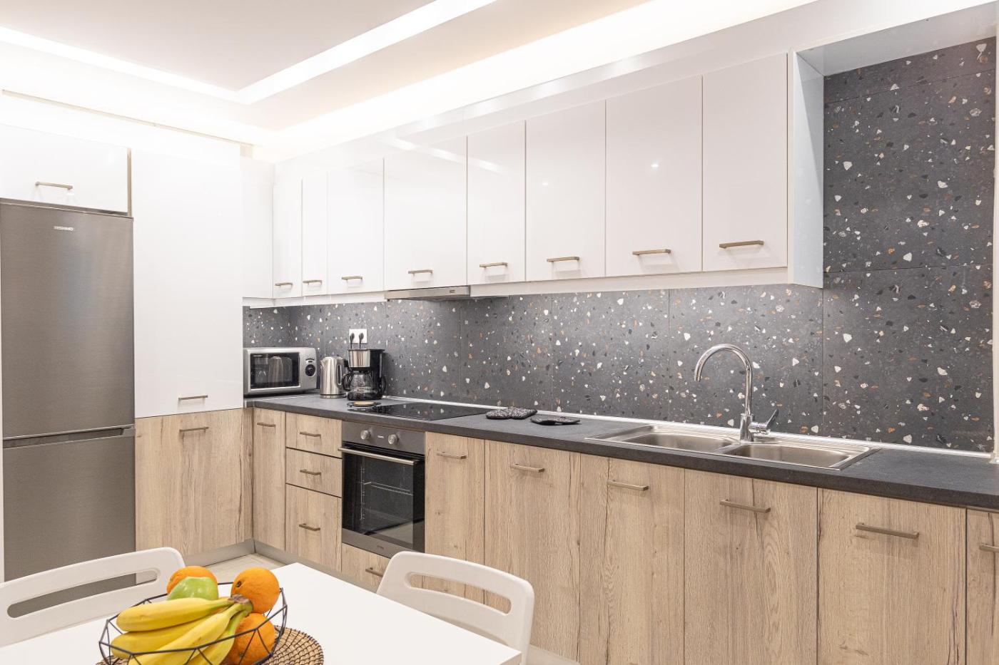 One-Bedroom Apartment. This spacious apartment comprises 1 living room, 1 separate bedroom and 1 bathroom with a shower and a hairdryer. Meals can be prepared in the well-fitted kitchen, which comes with a stovetop, a refrigerator, kitchenware and an oven. This air-conditioned apartment includes a dining area, a flat-screen TV with streaming services a washing machine and a balcony. The unit offers 2 beds.
