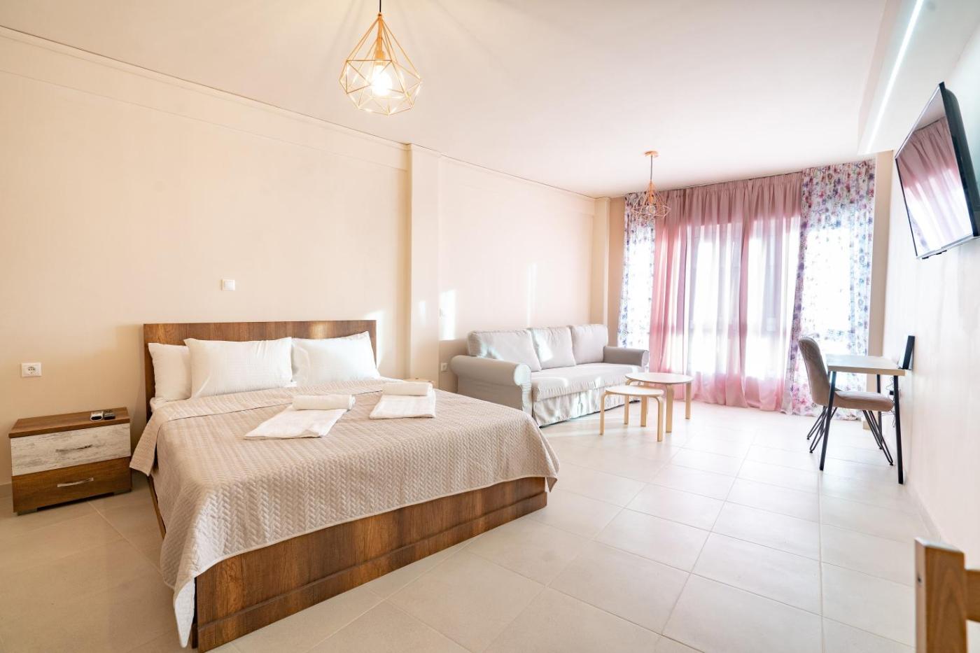 One-Bedroom Apartment. This air-conditioned apartment comprises 1 living room, 1 separate bedroom and 1 bathroom with a shower. Guests can make meals in the kitchen that comes with a stovetop, a refrigerator, an oven and a microwave. The apartment provides a flat-screen TV, a tea and coffee maker, a seating area, a dining area as well as city views. The unit offers 2 beds.