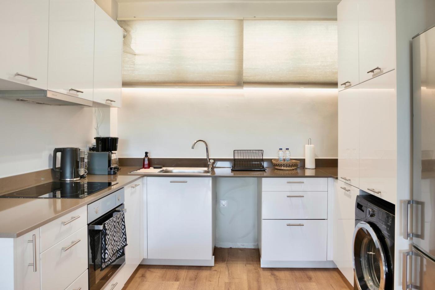 One-Bedroom Apartment. This apartment comprises 1 living room, 1 separate bedroom and 1 bathroom with a walk-in shower and free toiletries. Meals can be prepared in the well-fitted kitchen, which comes with a stovetop, a refrigerator, kitchenware and an oven. The air-conditioned apartment provides a flat-screen TV with streaming services, a washing machine, a tea and coffee maker, a seating area as well as sea views. The unit offers 2 beds.