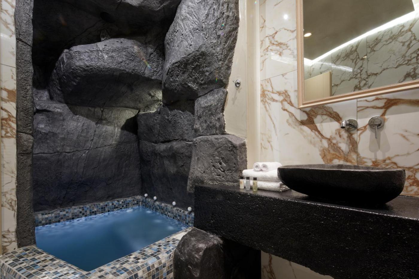 One-Bedroom Apartment. Guests will have a special experience as this apartment offers a hot tub and a fireplace. Featuring a private entrance, this air-conditioned apartment comprises 1 living room, 1 separate bedroom and 1 bathroom with a walk-in shower and a bidet. In the kitchen, guests will find a stovetop, a refrigerator and a tea and coffee maker. Boasting a terrace with sea views, this apartment also provides a washing machine and a flat-screen TV. The unit offers 2 beds. ;