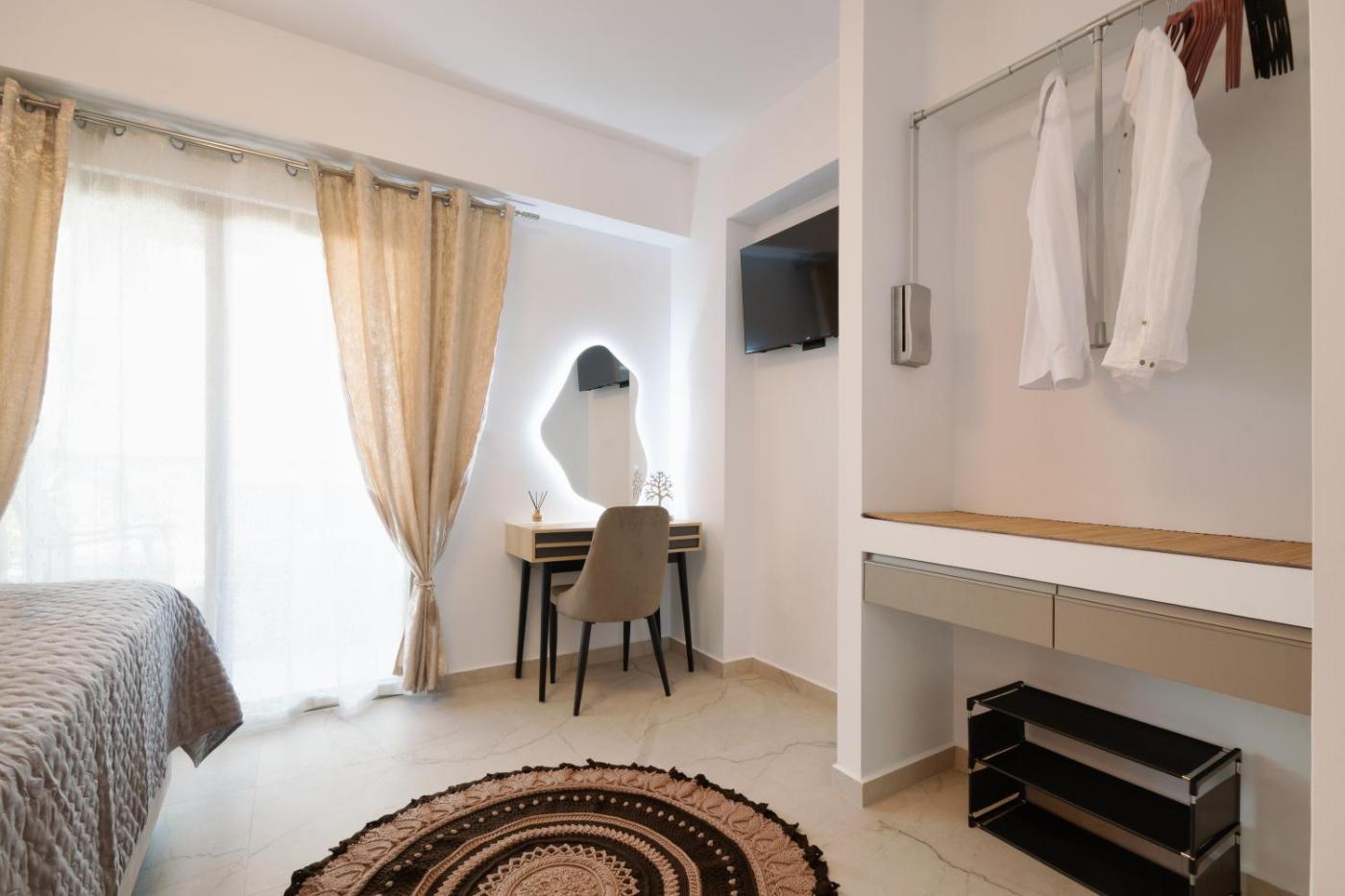 One-Bedroom Apartment. Boasting a private entrance, this air-conditioned apartment features 1 living room, 1 separate bedroom and 1 bathroom with a bath or a shower and a hairdryer. The apartments kitchen, which has kitchenware and a tea and coffee maker, is available for cooking and storing food. Featuring a terrace with sea views, this apartment also features a washing machine and a flat-screen TV. The unit has 2 beds. ;