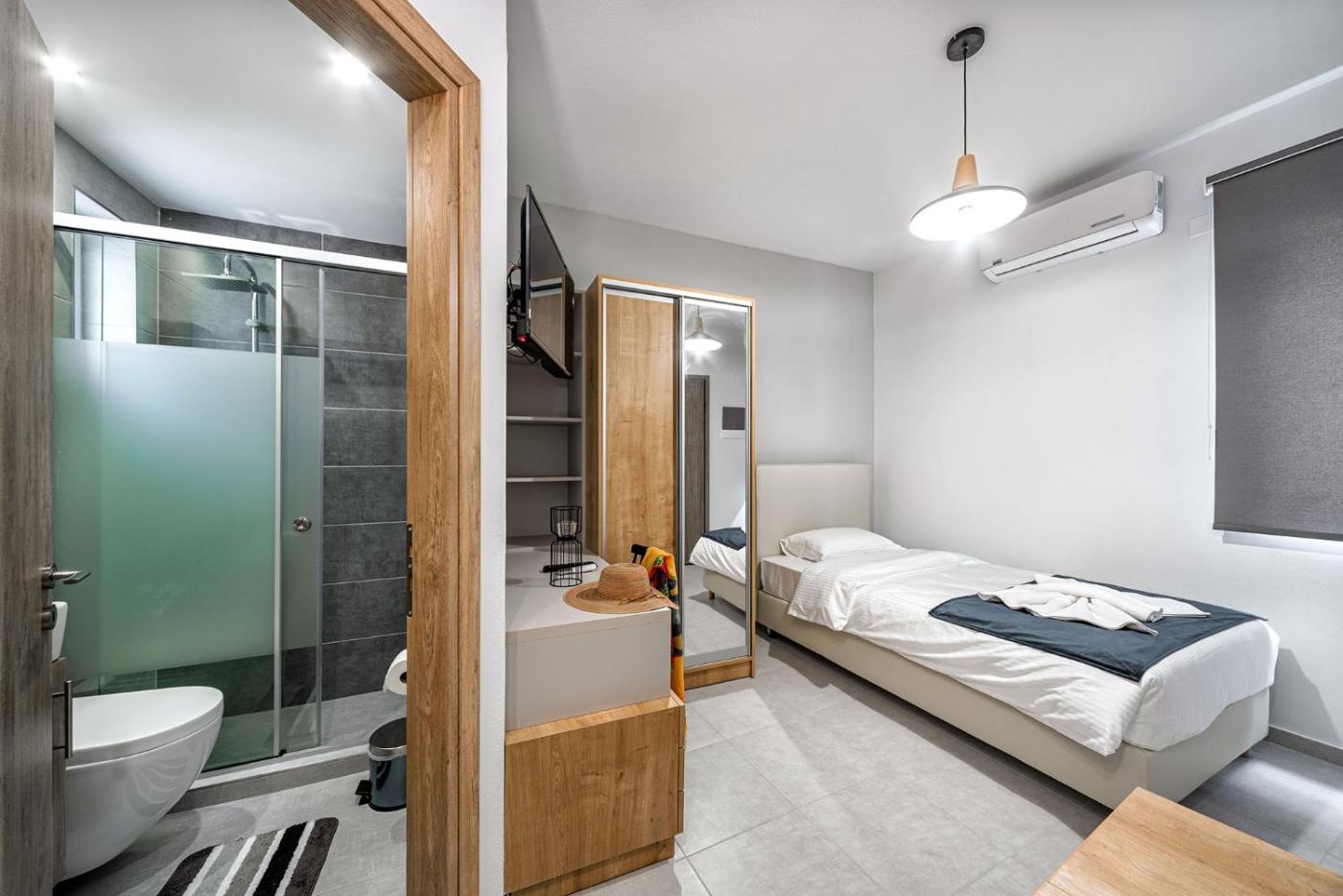 Superior Studio-Ground Floor. A kitchen fitted with a refrigerator, a microwave and a tea and coffee maker is available for cooking and storing food. The studio features air conditioning, a washing machine, a terrace with garden views as well as a private bathroom boasting a bath or a shower. The unit has 2 beds. ;