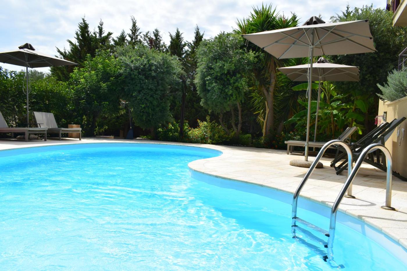Deluxe Apartment. This apartments special features are the private pool and the sauna. This spacious apartment comes with 1 living room, 3 separate bedrooms and 2 bathrooms with a shower and free toiletries. Guests will find a stovetop, a refrigerator, a dishwasher and kitchenware in the fully equipped kitchen. The apartment also includes a barbecue. The air-conditioned apartment features a flat-screen TV, a washing machine, a private entrance, soundproof walls as well as garden views. The unit has 5 beds.