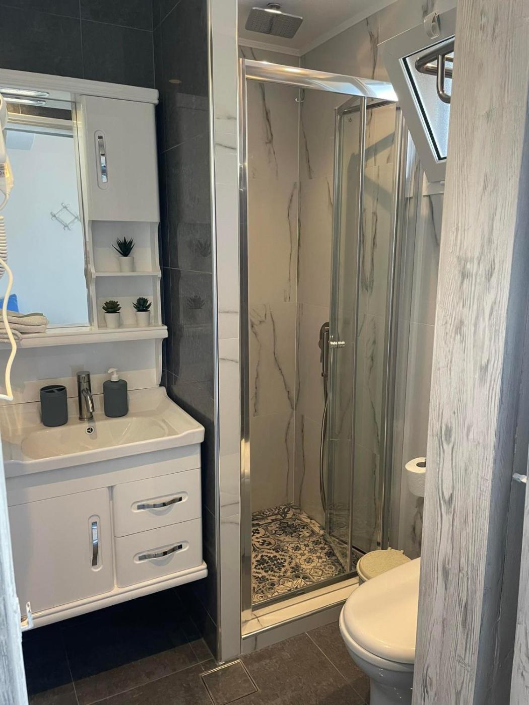 One-Bedroom Apartment. The air-conditioned apartment has 1 bedroom and 1 bathroom with a shower and a hairdryer. The apartments kitchenette, which features a refrigerator and kitchenware, is available for cooking and storing food. Boasting a terrace with sea views, this apartment also features a tea and coffee maker and a flat-screen TV with streaming services. The unit has 2 beds. ;