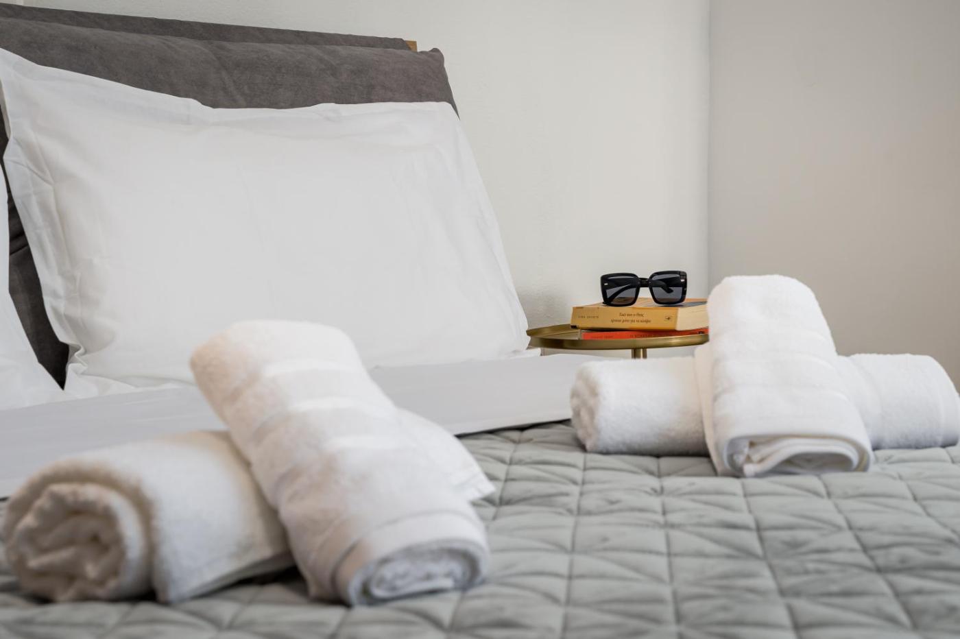 Three-Bedroom Apartment. This apartment offers a fireplace. Featuring a private entrance, this air-conditioned apartment comprises 1 living room, 3 separate bedrooms and 1 bathroom with a shower and a hairdryer. Meals can be prepared in the well-fitted kitchen, which comes with a stovetop, a refrigerator, kitchenware and an oven. The spacious apartment provides a flat-screen TV with streaming services, a washing machine, soundproof walls, a tea and coffee maker as well as sea views. The unit offers 4 beds.