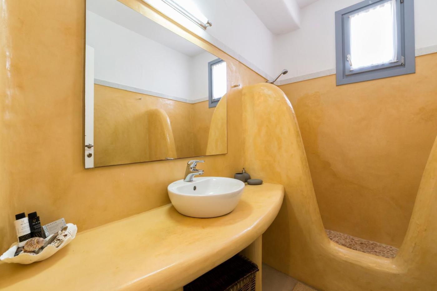 Honeymoon Sea View. This sizable family room is situated at the upper level of the complex and has its own independent entrance. The unit has a balcony, with sea, port and village views and outdoor furniture. It consists of an open space, with a double bed and a single bed, air condition and TV. There is also a bathroom with built-in shower. ;