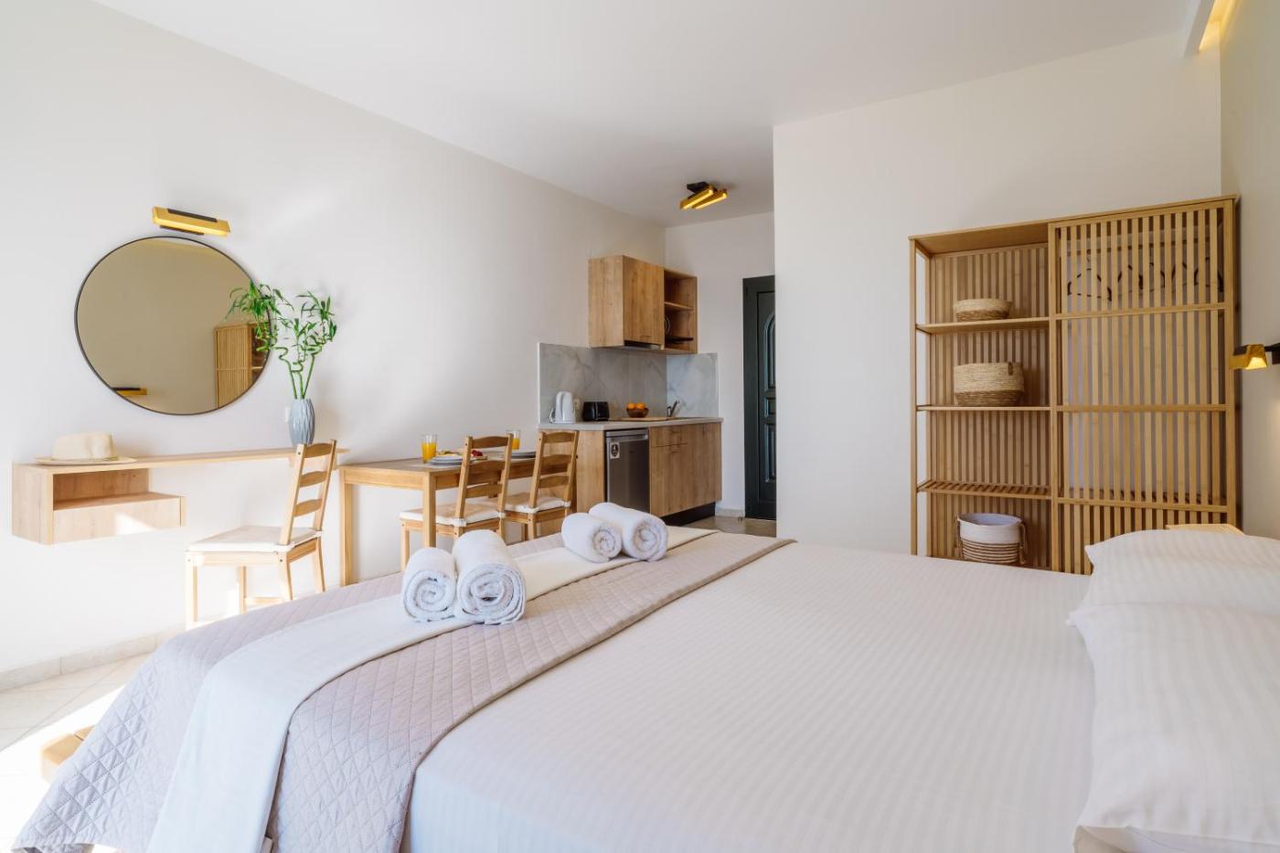 Deluxe Double Room. In the well-fitted kitchenette, guests will find a stovetop, a refrigerator, kitchenware and a toaster. The spacious double room features air conditioning, a wardrobe, a balcony with sea views as well as a private bathroom boasting a shower. The unit has 1 bed.