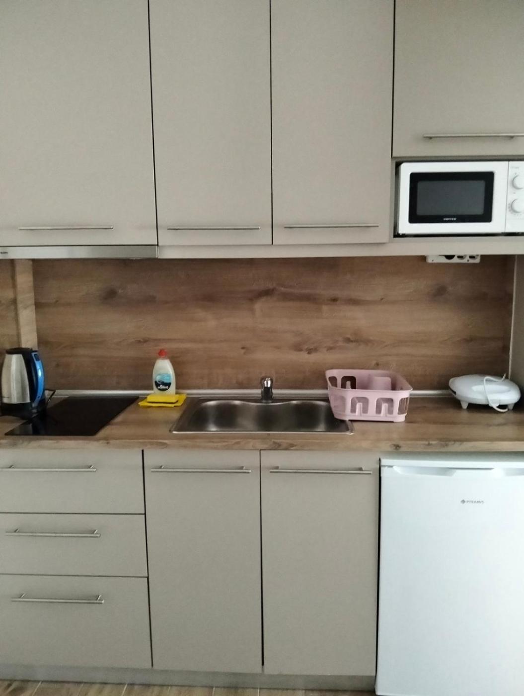 Triple Room with Pool View. This triple room features a infinity pool. Guests can make meals in the kitchenette that has a stovetop, a refrigerator, kitchenware and a microwave. This air-conditioned triple room is comprised of a flat-screen TV with cable channels, a private bathroom as well as a terrace with pool views. The unit has 2 beds. ;