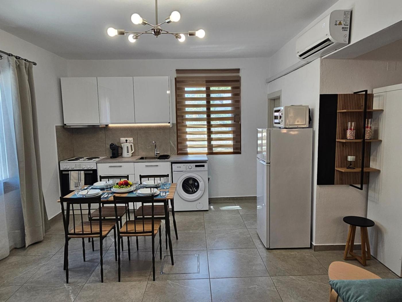One-Bedroom Apartment with Garden. Boasting a private entrance, this air-conditioned apartment features 1 living room, 1 separate bedroom and 1 bathroom with a shower and a hairdryer. Meals can be prepared in the kitchenette, which has a stovetop, a refrigerator, kitchenware and an oven. This apartment has a washing machine, flat-screen TV, garden views, as well as winechampagne for guests. The unit has 3 beds.