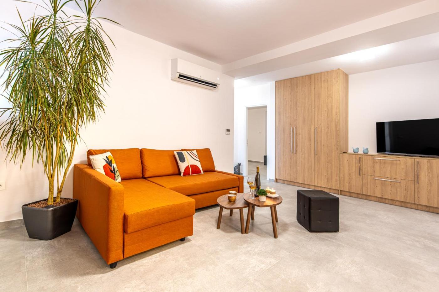 Two-Bedroom Apartment. Boasting a private entrance, this air-conditioned apartment includes 1 living room, 2 separate bedrooms and 1 bathroom with a walk-in shower and a bidet. In the fully equipped kitchen, guests will find a stovetop, a refrigerator, a dishwasher and kitchenware. The spacious apartment offers a washing machine, a tea and coffee maker, a seating area, a flat-screen TV, as well as garden views. The unit has 4 beds.