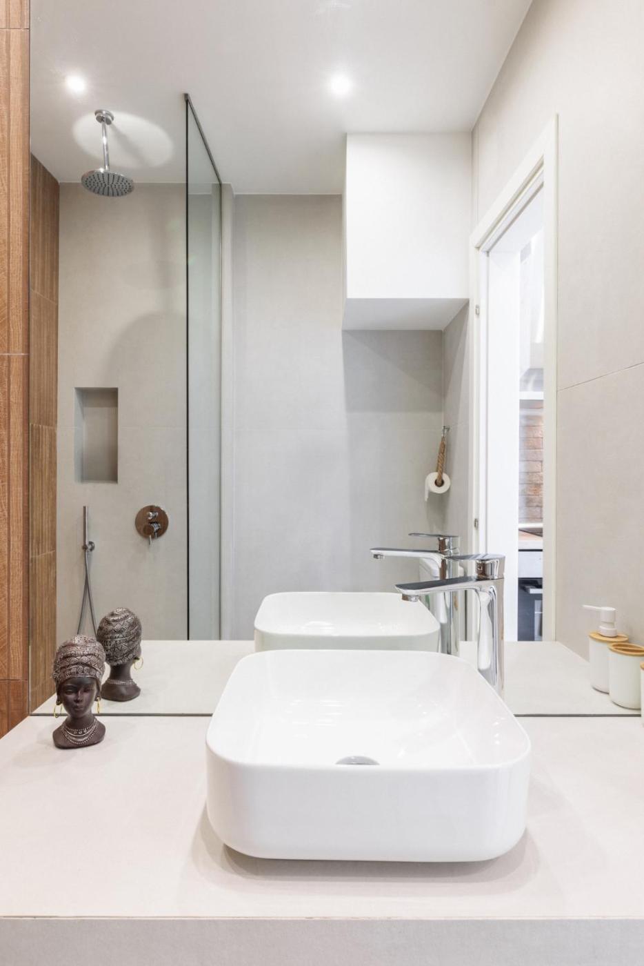 Deluxe Double Room. The spacious double room features air conditioning, a washing machine, as well as a private bathroom boasting a shower and a hairdryer. The kitchen features a refrigerator, kitchenware and an oven. The double room offers soundproof walls, a minibar, a coffee machine, a wardrobe, as well as a flat-screen TV. The unit has 1 bed. ;