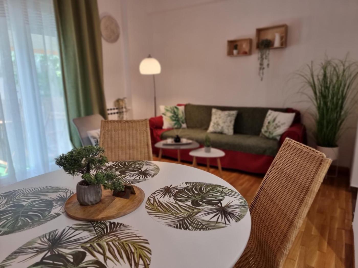 The apartment features 1 bedroom, 1 bathroom, bed linen, towels, a flat-screen TV with streaming services, a dining area, a fully equipped kitchen, and a terrace with garden views. This apartment is non-smoking and soundproof.